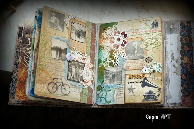 ОтветитьУдалитьТанюшик ,спасибо,дорогой друг!!я уж думала ,ты меня забыла совсем!)))благодарю за лестные и приятные слова-но в этот альбом я действительно вложила большой кусок души))если так можно сказать)) он для дорогого человека про близких и любимых и знакомых и друзей детства...по-поводу блокнотика,-это только обложечка более менее выглядит,все странички были давно вырваны и сваляны,кто где,не удивлюсь,если еще где-нибудь обнаружатся))и некоторые фотки в таком были плачевном состоянии ,по кусочкам собирала ,даже в альбоме видно-3-4 фото просто рванье,кое-как отреставрировала,а вот записи ,напротив сохранились хорошо,практически все,там же еще марки были,давно оторванные,бесцеремонно))Рада ,как ребенок,что понравилось!!единственно промахнулась с переплетом,надо было Виноградовский делать,я побоялась,он показался сложноватым))Но теперь ясно-бояться не стоит,надо делать!!